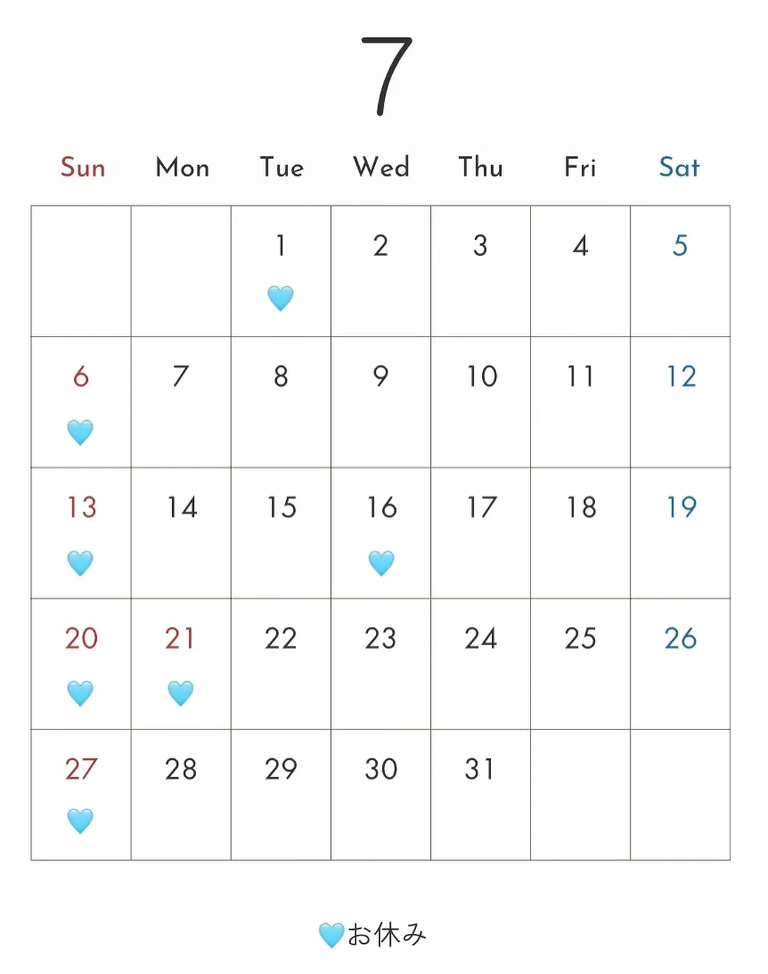 7月の営業日です🩵