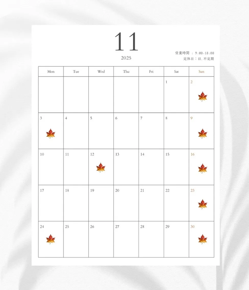 《岐阜市》11月営業日🈺 🍁お休み